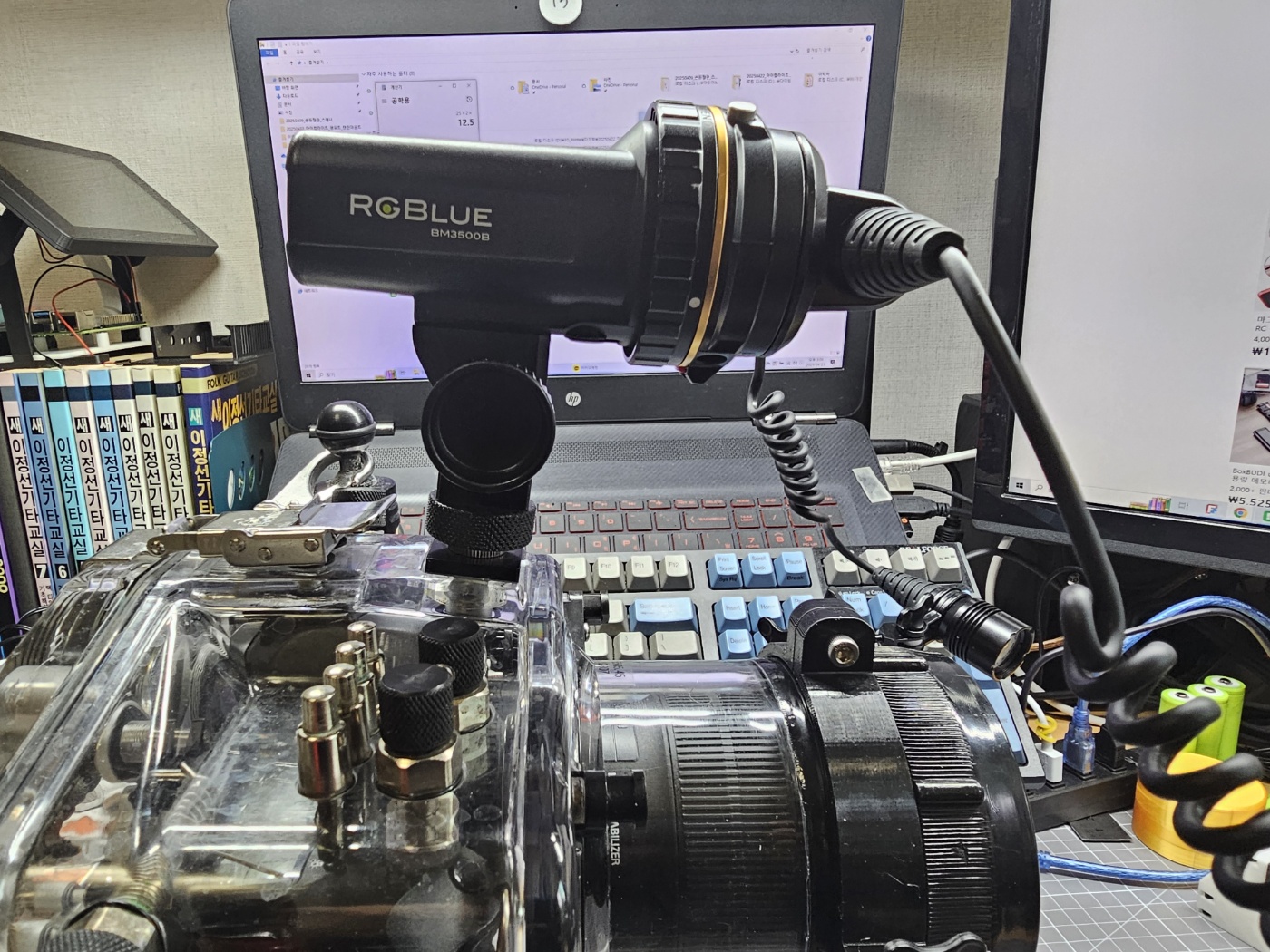 처음에는 자바라로 랜턴을 달아서 촬영해보았지만 수중에서 피사체와의 거리, 초점 상태에 따라 랜턴의 각도를 정확히 스팟에 마추기가 매우 어렵다는 것을 깨닳았습니다.