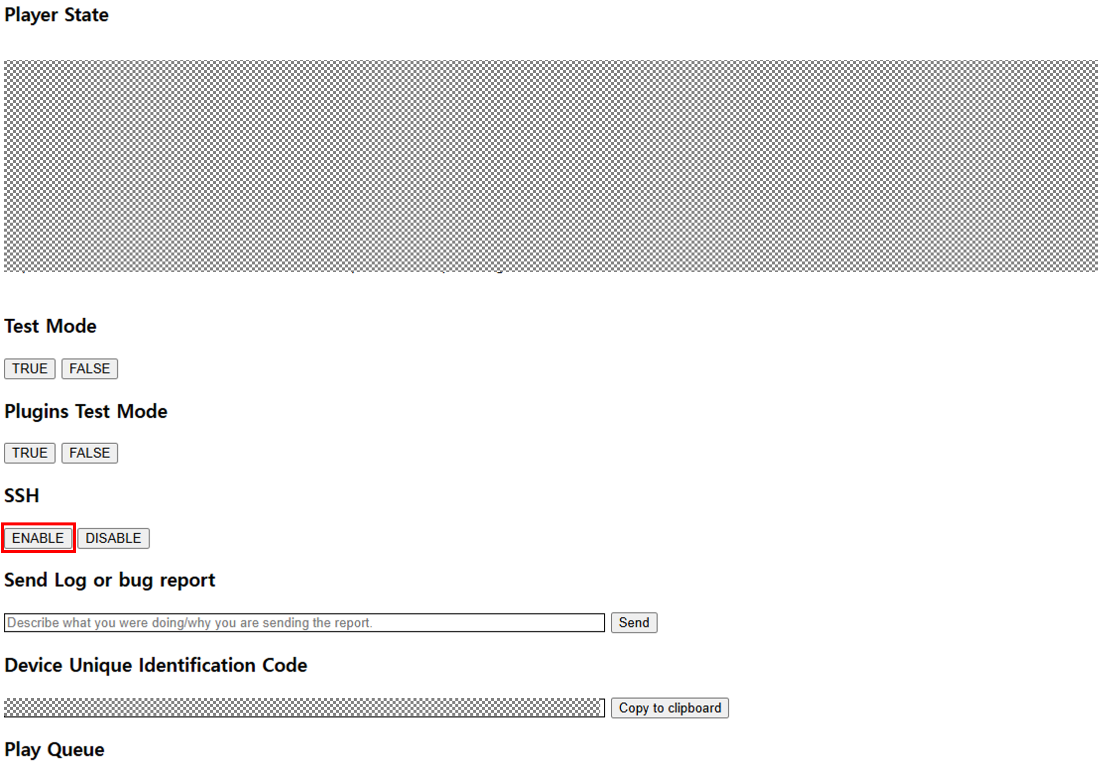 휴대폰 Volumio 앱 또는 웹 브라우저에서 (http://volumio.local/dev 또는 http://확인한 IP/dev)