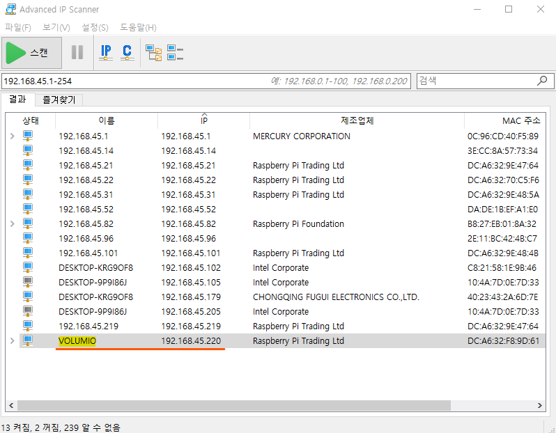 3. Volumio 주소 확인
