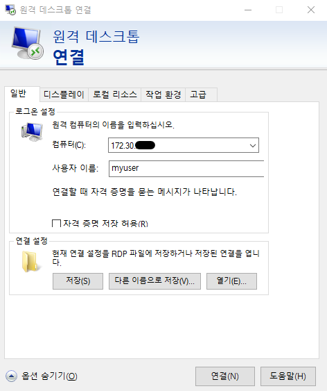이상태에서 윈도우 원격데스크탑연결로 연결시 인증화면까지 진행되고 id / pw 입력 하면 윈도우가 종료된다.