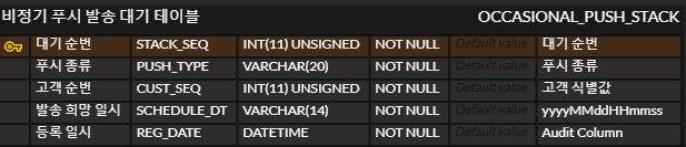 앱의 푸시를 발송하기 위한 대기 테이블을 만들었습니다.