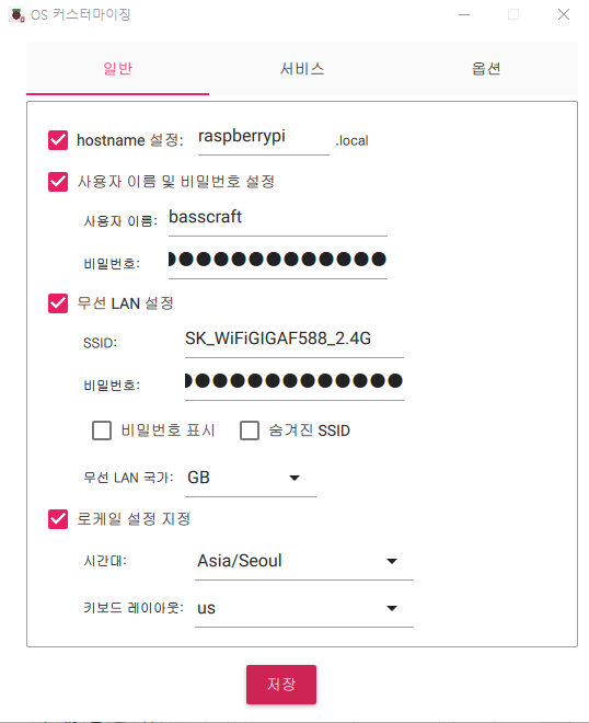 hostname, 사용자계정 및 비밀번호, wifi 설정, 로케일 설정, SSH 사용여부 등을 미리 설정 할 수 있다.