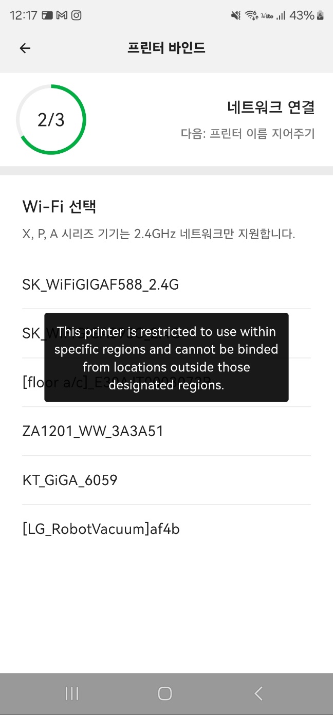 다만 이번에 추가로 구매한 P1S의 경우 중국 내수품을 구입하였는데, 뱀부랩의 정책으로 중국이외의 국가에서는 네트워크 연결이 안되도록 펌웨어에서 설정을 해놓은 것 같습니다.