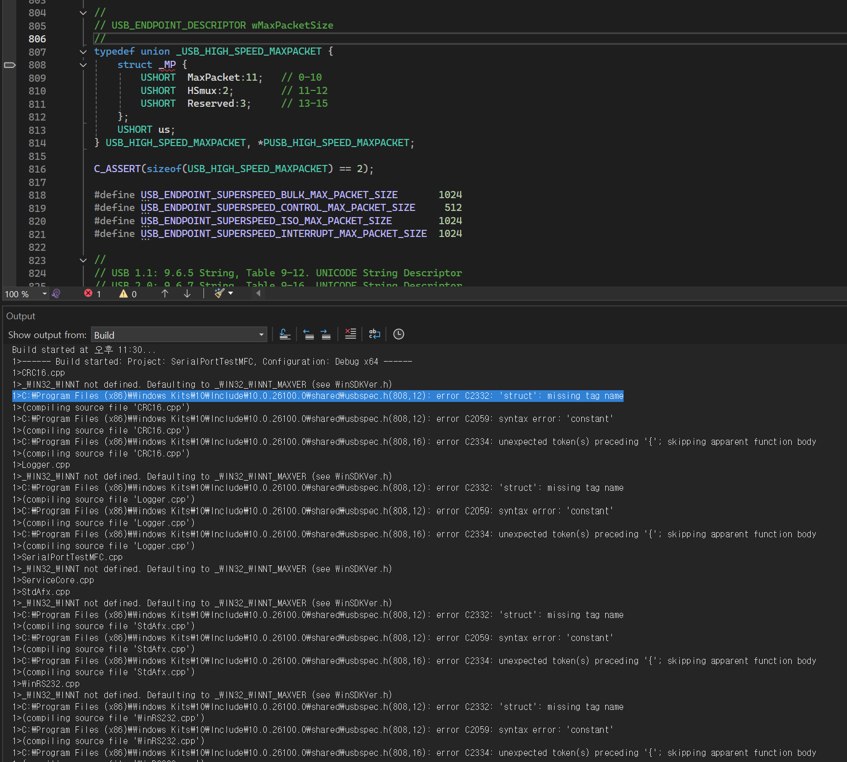 아래 애러는 USB 관련 usbspec.h 파일에서 발생하는데 _MP 라는 구조체가 다른 곳에서 이미 선언되어 있어서 발생하는 것 같습니다.