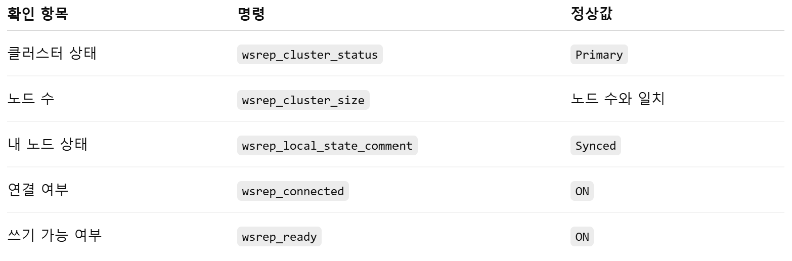 - wsrep_cluster_address : 노드에 참여하는 IP 나열