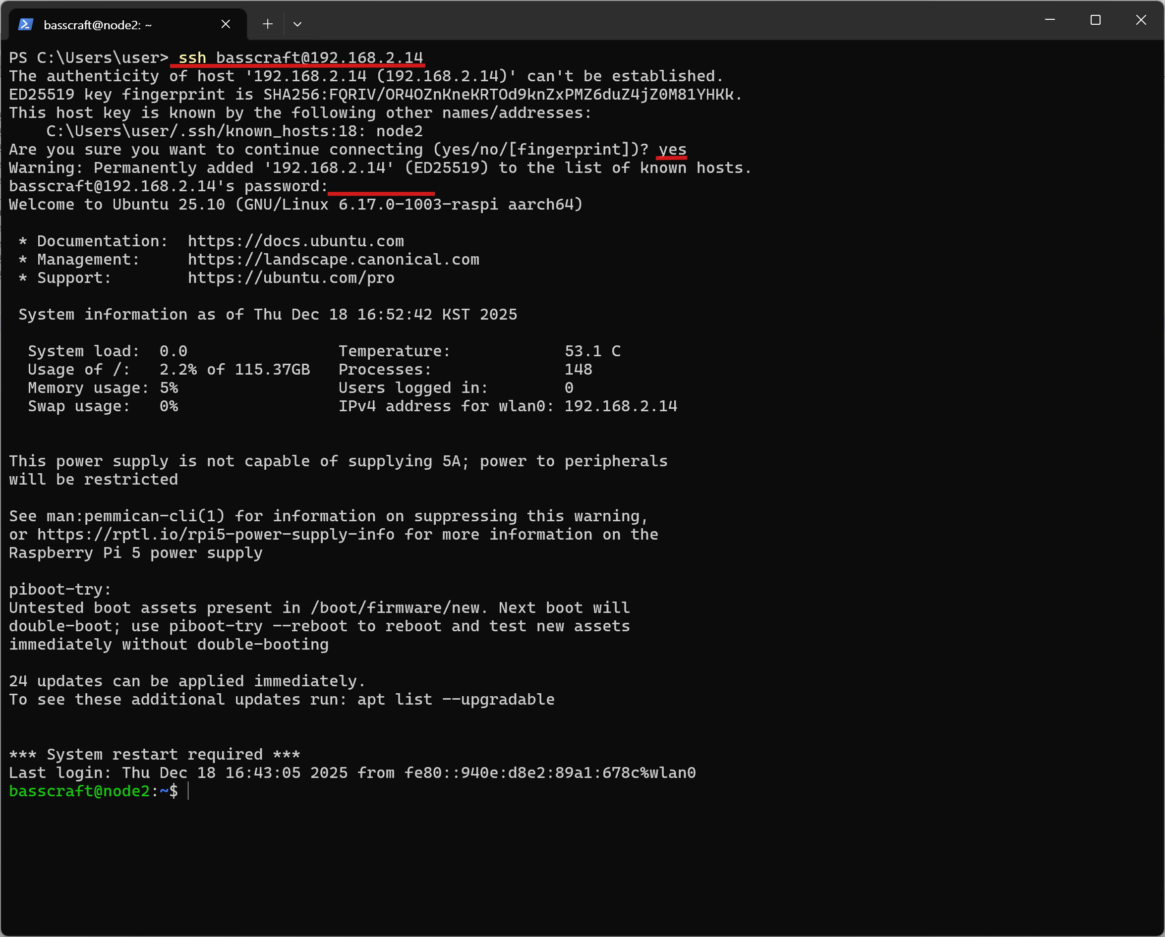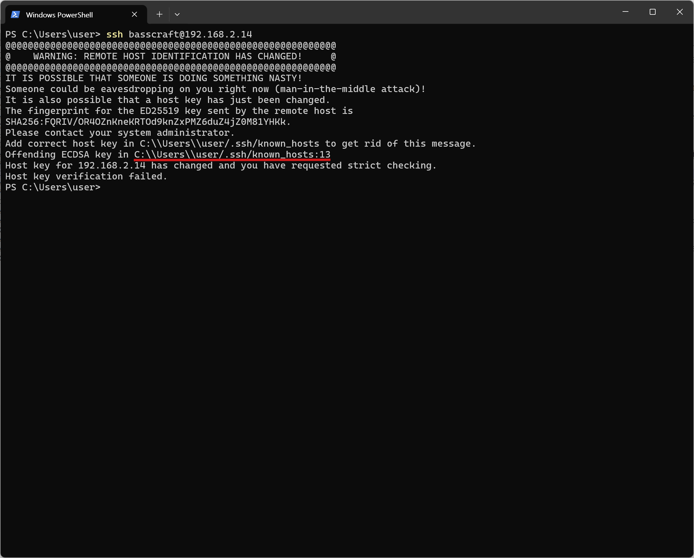 PS C:\Users\user> ssh basscraft@192.168.2.101