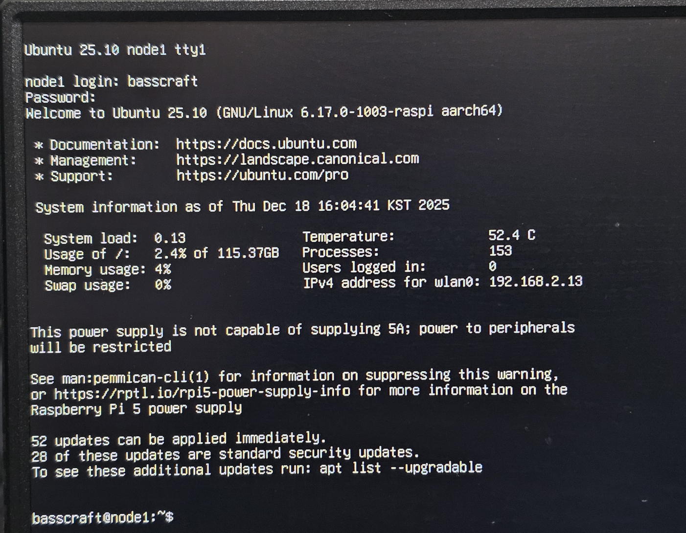 (최초 Ubuntu Server 최신 버전으로 설치 했으나 지원기간 문제로 LTS 버전으로 변경, 이후 캡쳐에 나오는 25.10 버전은 참고만 하세요)