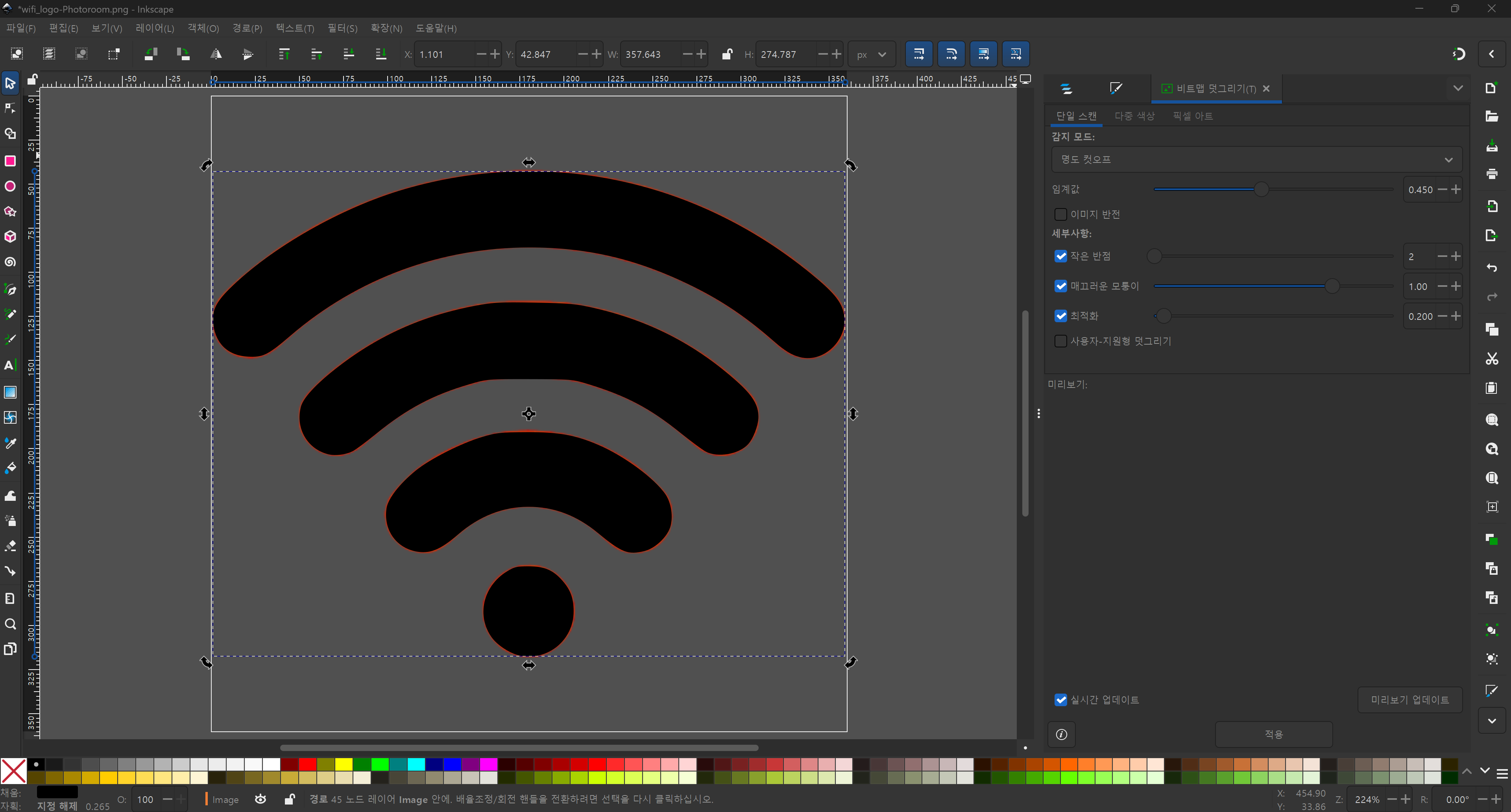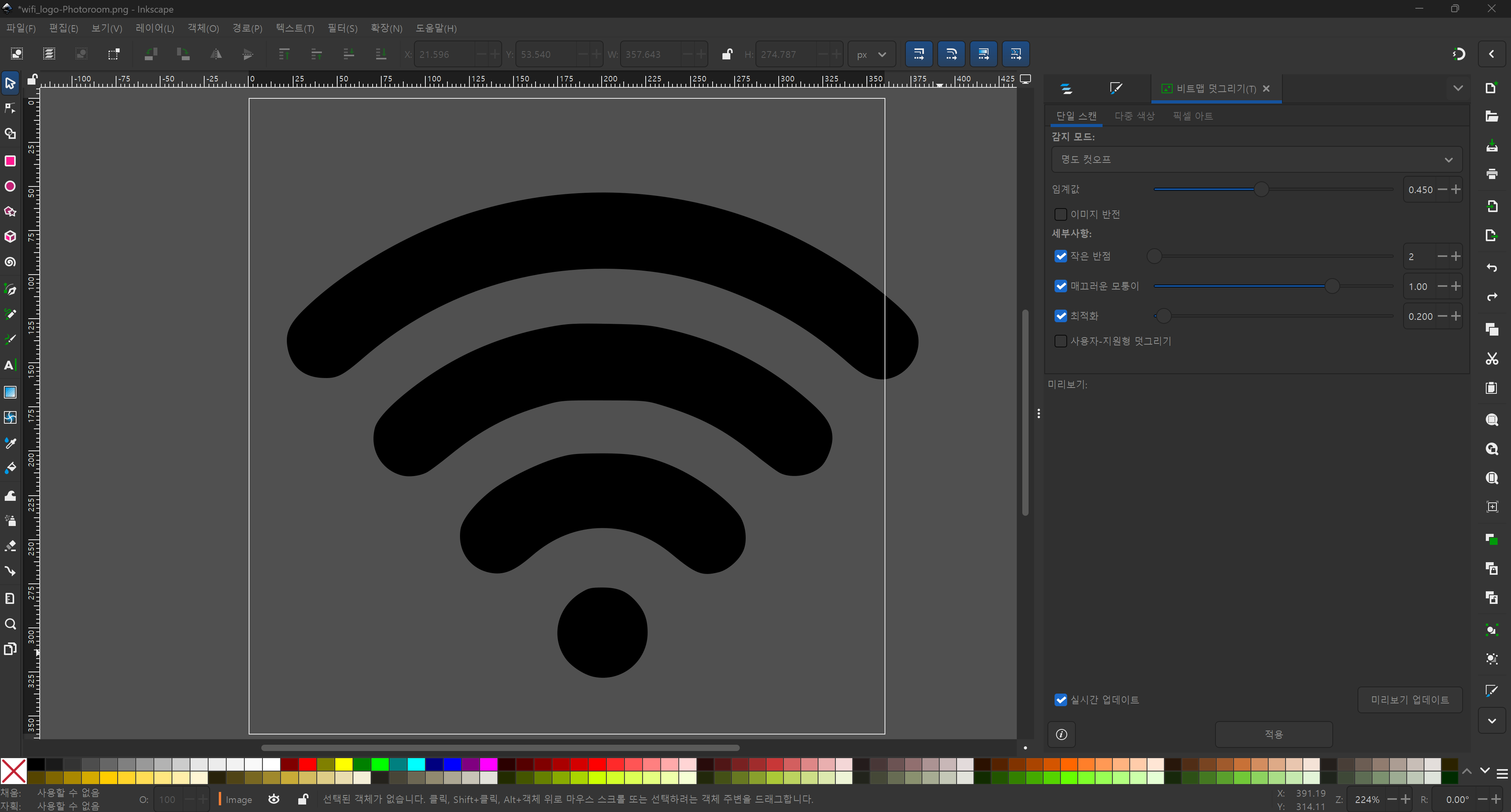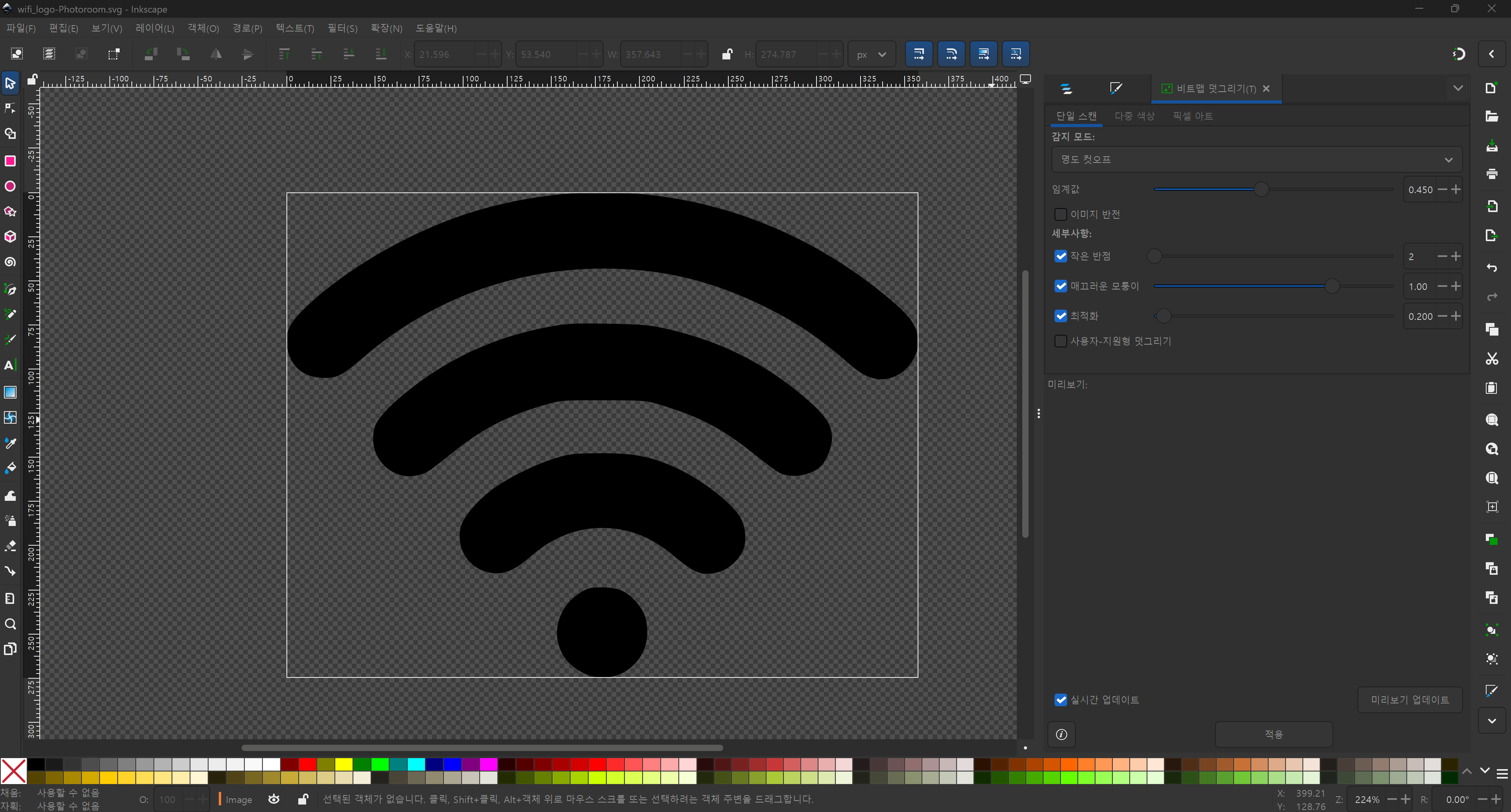 메뉴 : 경로(Path) -> 비트맵 따라 그리기(Trace Bitmap)(Shift + Alt + B)