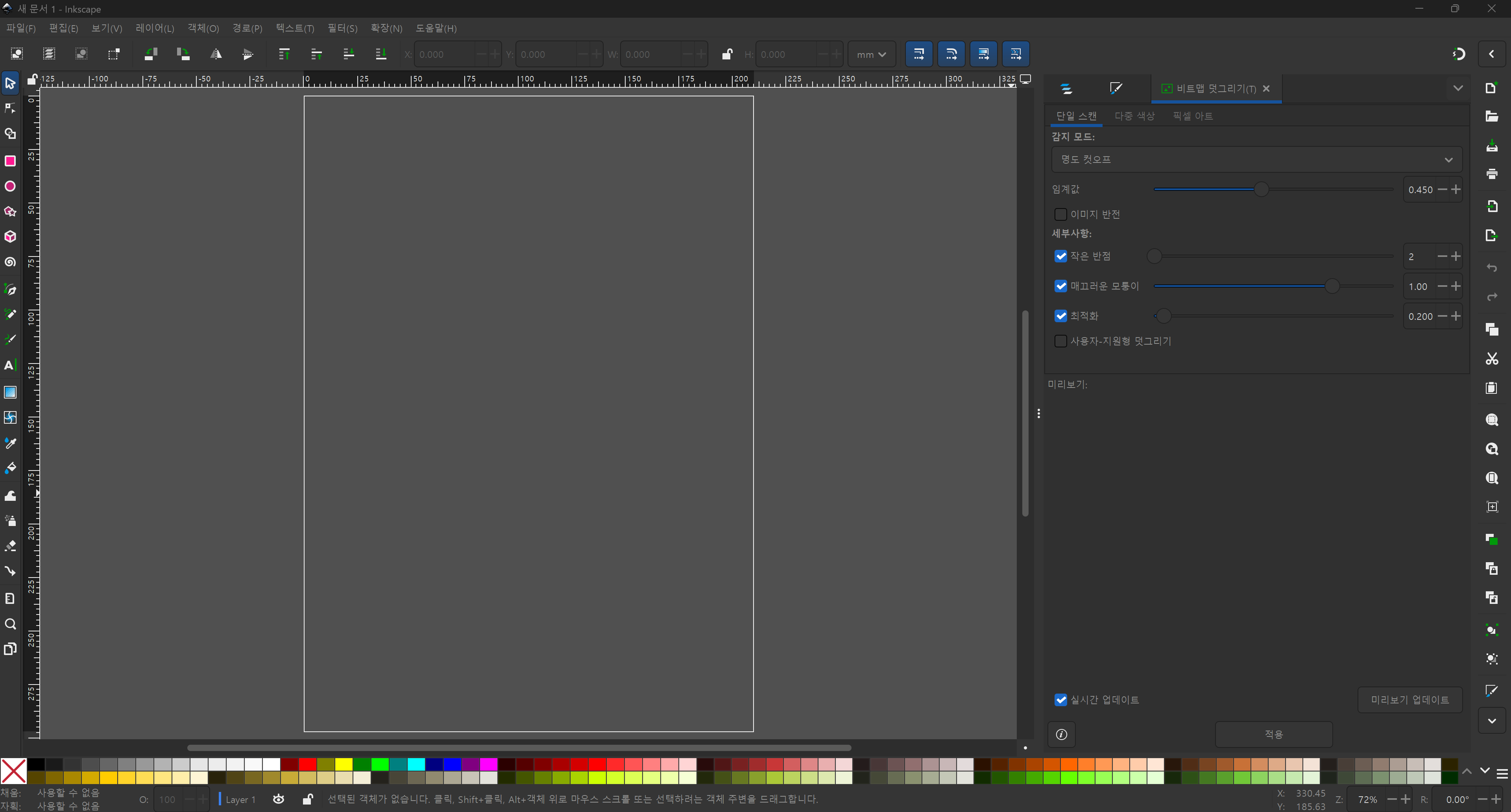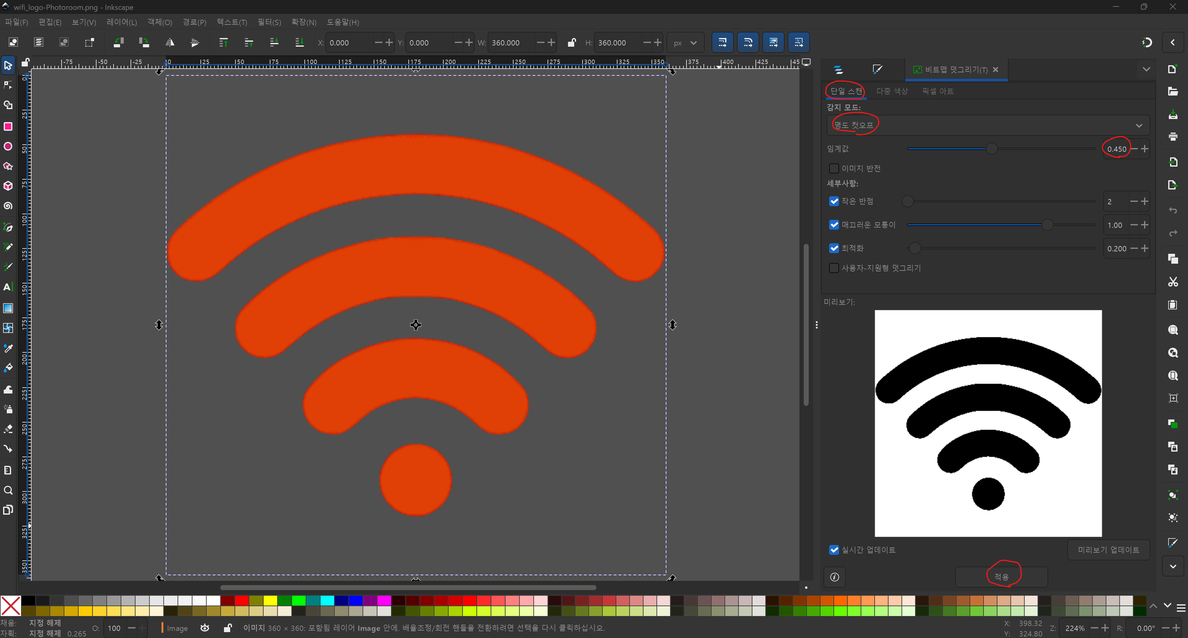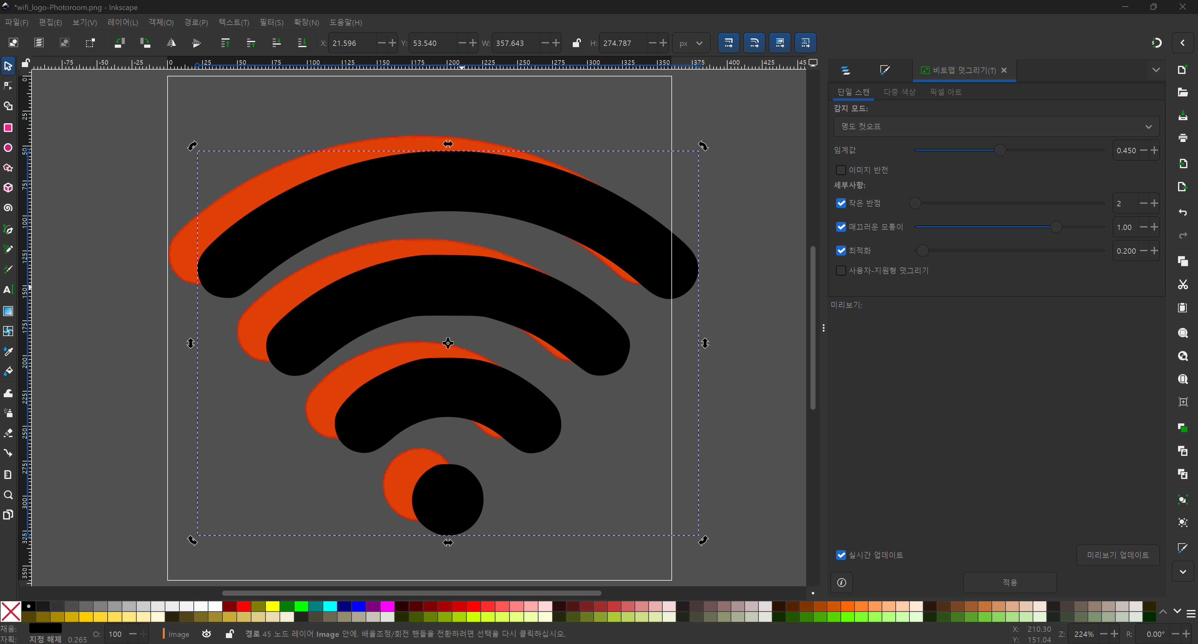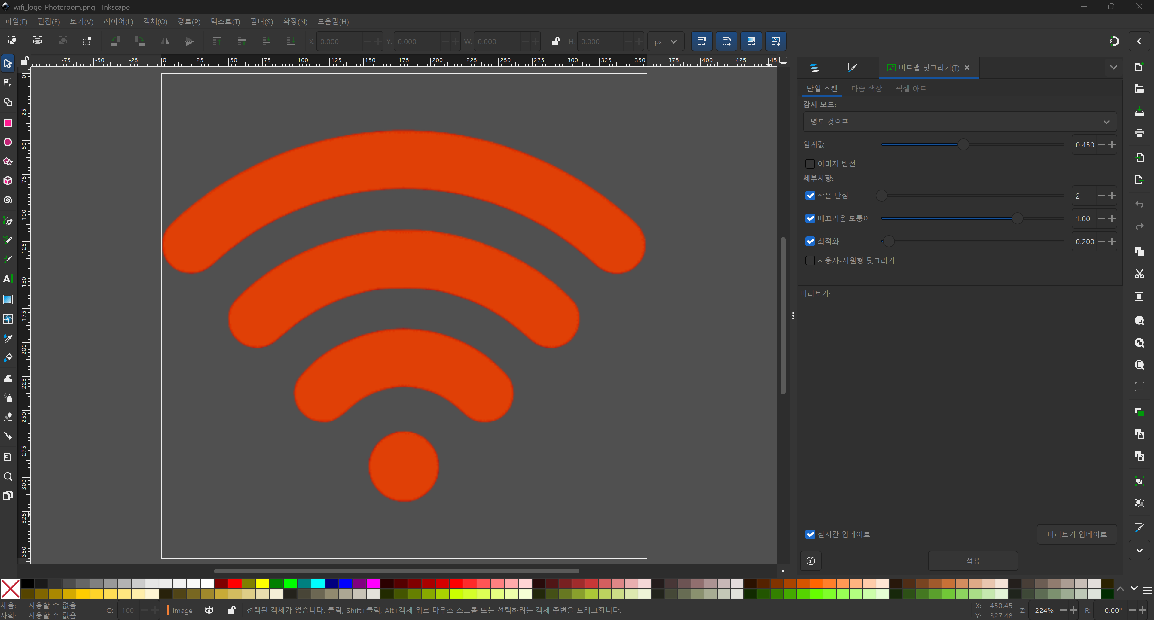 메뉴 : 경로(Path) -> 비트맵 따라 그리기(Trace Bitmap)(Shift + Alt + B)